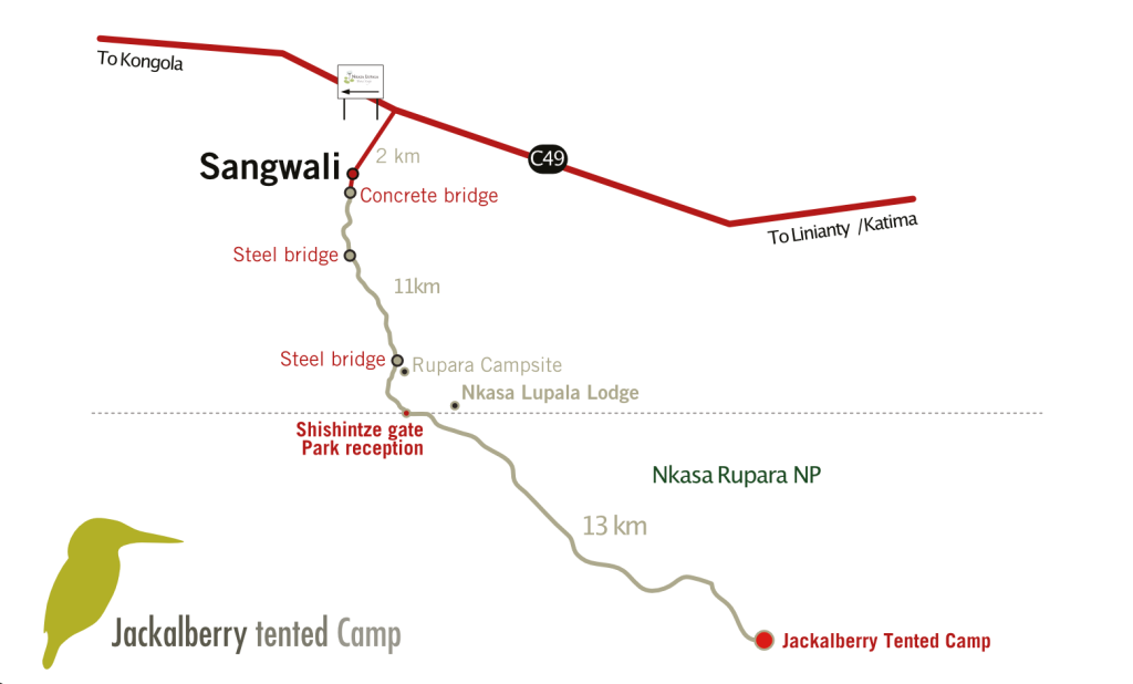 The only access to Jackalberry Tented Camp is by entering and driving through Nkasa Rupara National Park.