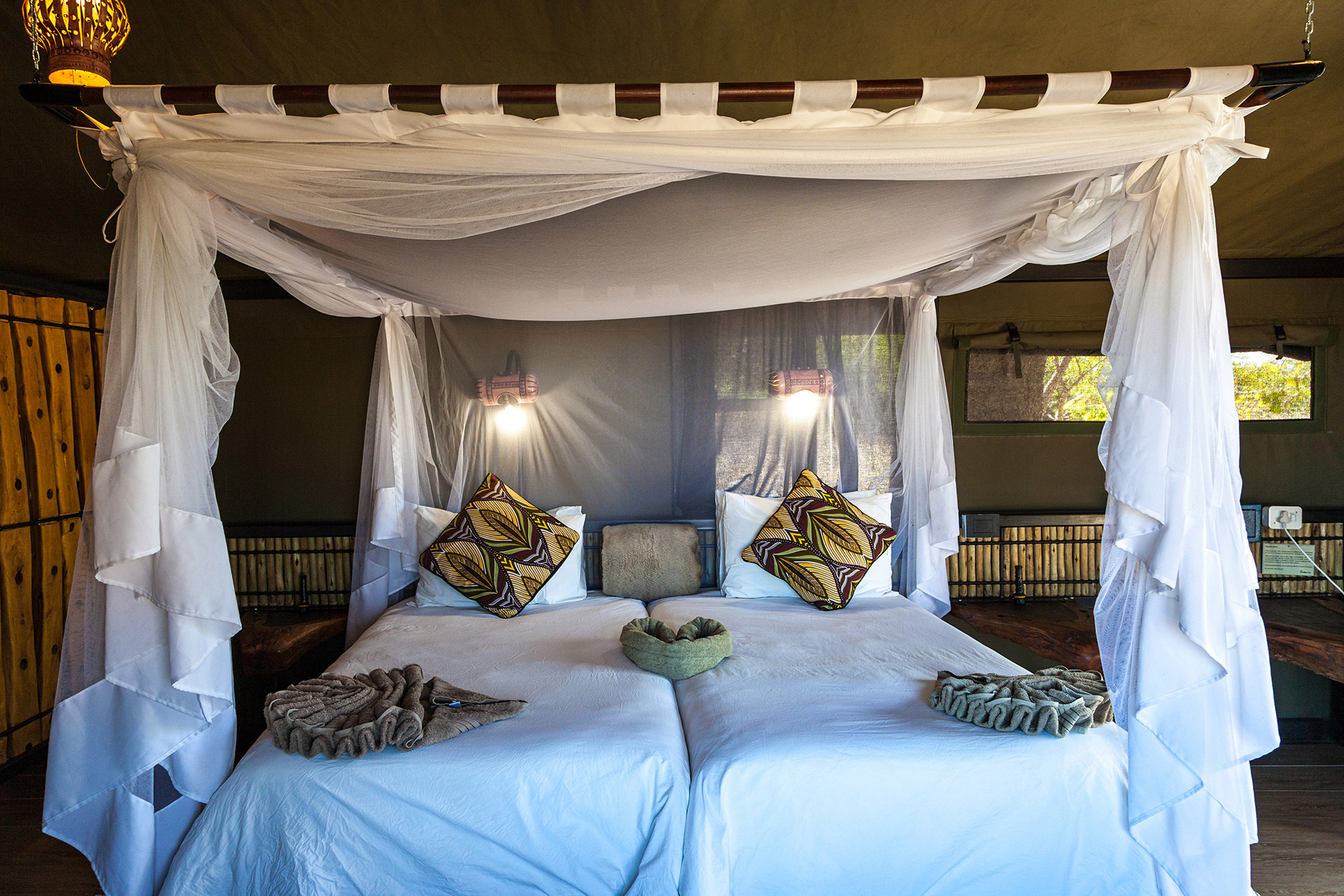 Jackalberry Tented Camp offers an exclusive sanctuary comprising just four spacious double tented rooms. Designed to blend seamlessly with the environment, each tent provides a luxurious haven of comfort in the heart of the bush.